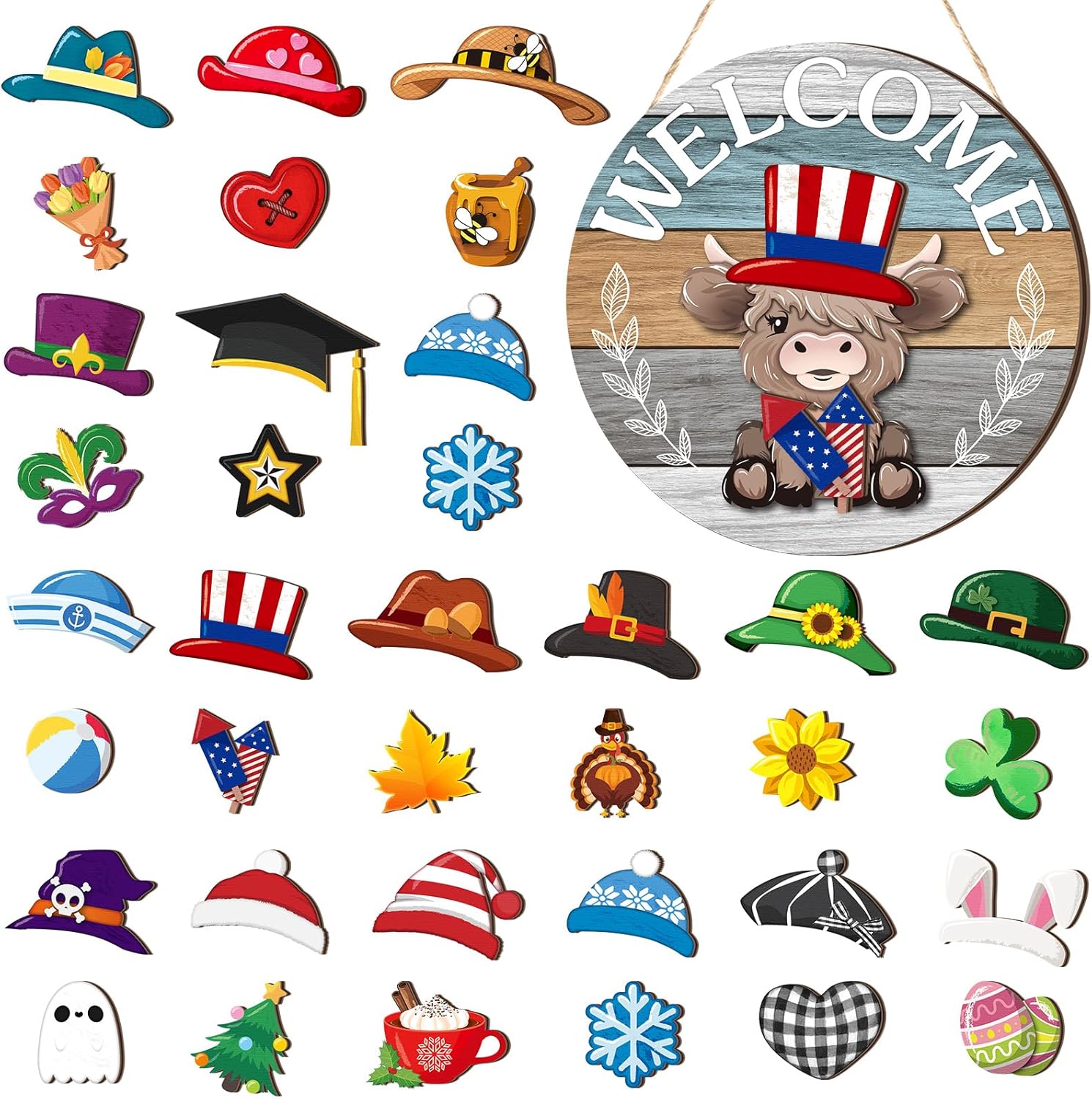 | Included Components | Highlands cow welcome sign, interchangeable pieces, rope |