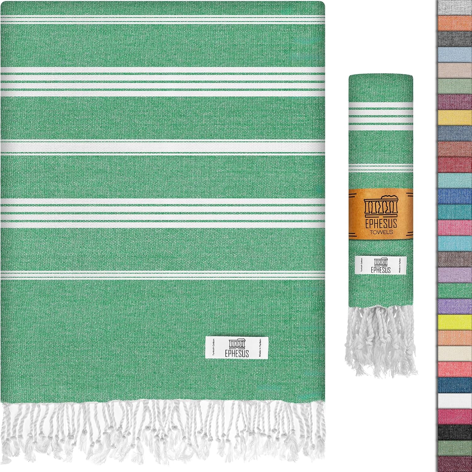 EPHESUS TOWELS Turkish Beach Towels: EPHESUS TOWELS are made from high quality cotton polyester blend. They are sourced from traditional Turkish bath culture. Our Turkish beach towels can also be used at bath, pool, gym or yoga. They are very large in size so you can use them as blanket. have a multi-purpose use and decorative value. You will feel yourself in luxury with the modern design of the original Turkish Peshtemal Beach Towel! It is highly absorbent and ideal for use at the spa, poolside or just at home. It is thinner than terry cloth and dries incredibly quickly, making it less prone to odor formation. And because it's super soft, it's gentle enough for babies and those with sensitive skin.With their versatile use, they are the best travel companions. Use it as a beach towel, beach blanket, Our towels are available in many colors. MULTI-PURPOSE USE Beach Pool towelsBath towelSPA, Fitness and Yoga towelIn daily life. E.g; Pareo, Scarf, Sarong, ShawlBeach Blanket, Picnic Blanket, Travel Blanket and Baby Care.Fouta towelSofa, chair and tableclothCamping and Picnic BlanketWall and door Tapestry Care Instructions Machine Wash 85-100°F (30-40°C)Do not bleachSoftener According to DesireUse a Hot Iron to Smooth Unwanted Wrinkles.Low Dry or Line Dry.